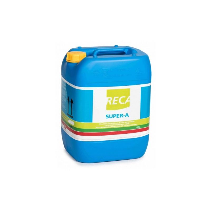 RECA Super A is een chloorhoudend alkalisch reinigings- en desinfectiemiddel ten behoeve van de circulatiereiniging van de conventionele melkmachine, melktank en minimelker. RECA Super A is binnen de range van chloorhoudend alkalische reinigingsmiddelen een geavanceerd middel dankzij de houdbaarheid en stabiliteit van het concentraat, de mate waarin het de waterhardheid bindt en het reinigend vermogen.