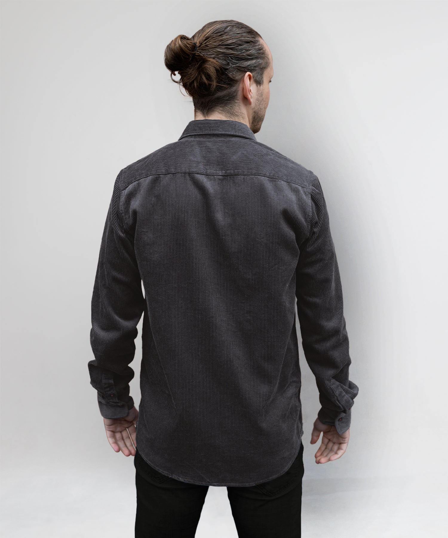 Comfortabel antracieten corduroy overhemd van 100% katoen.