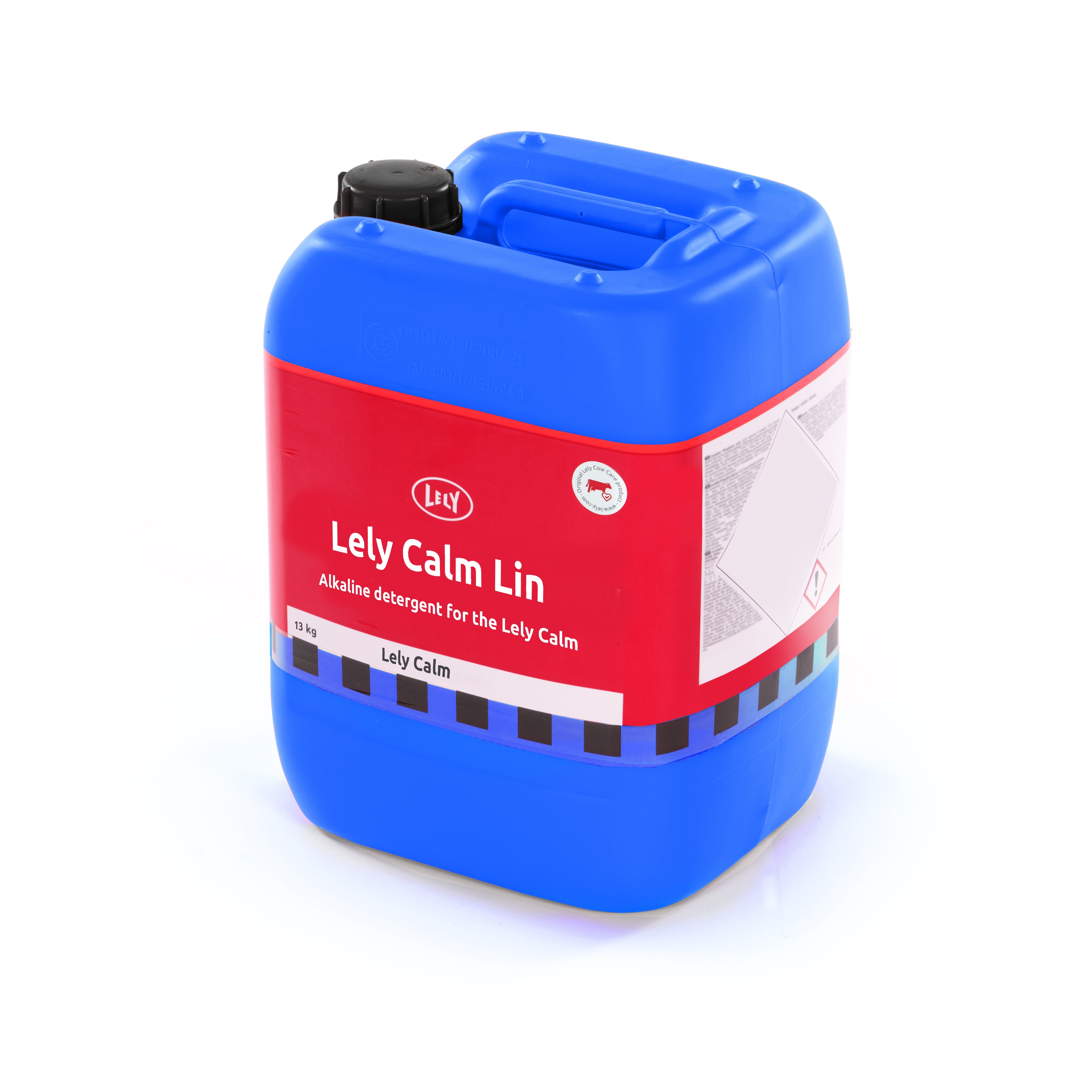 Lely Calm-Lin is een alkalisch chloorvrij product. Het bevat natriumhydroxide en is daarmee geschikt voor het effectief verwijderen van vet, eiwit- en suikerresten van het voer. De samenstelling is verrijkt met kalkbinders en oppervlakte actieve stoffen. De kalkbindende stoffen maken schoon en voorkomen klakafzetting tijdens reinigen met een alkalisch middel. Dit maakt alkalisch reinigen met relatief hard water mogelijk zonder dat zich kalkafzetting vormt. Deze oppervlakte actieve stoffen spelen een belangrijke rol bij het indringen van vuil en het oplossen ervan in het reinigingsmiddel. Dat is met name voor dit type apparatuur een aantrekkelijke eigenschap gezien de wat minder gunstige verhouding vuil - reinigingsvolume. Hoewel Lely Calm-Lin kalkproblemen door waterhardheid kan voorkomen, raadt Lely aan afwisselend te reinigen met Lely Calm-Cid. Deze combinatie van intervalreiniging levert het beste resultaat: een schoon oppervlak voor optimaal hygiënische voerverwerking.