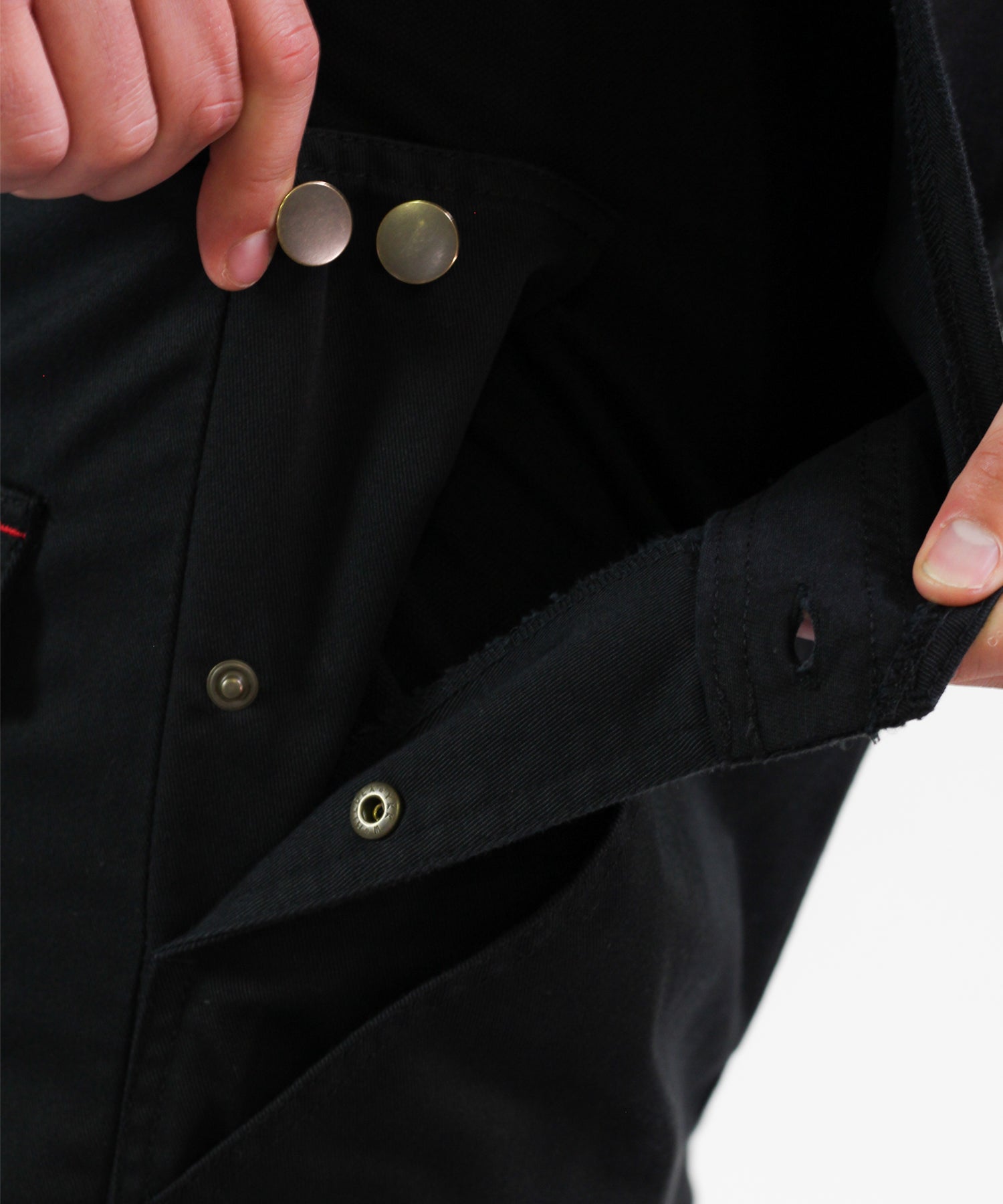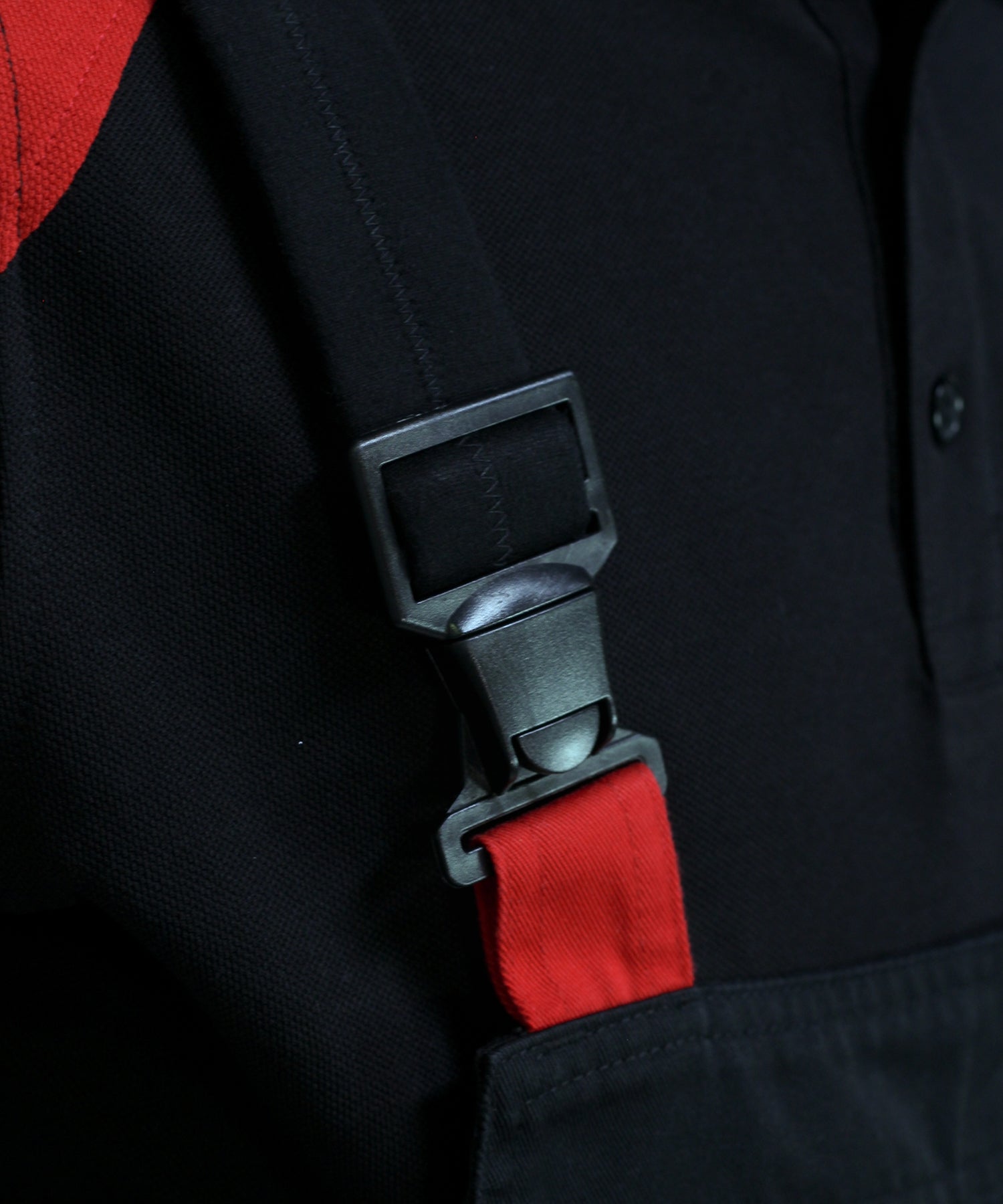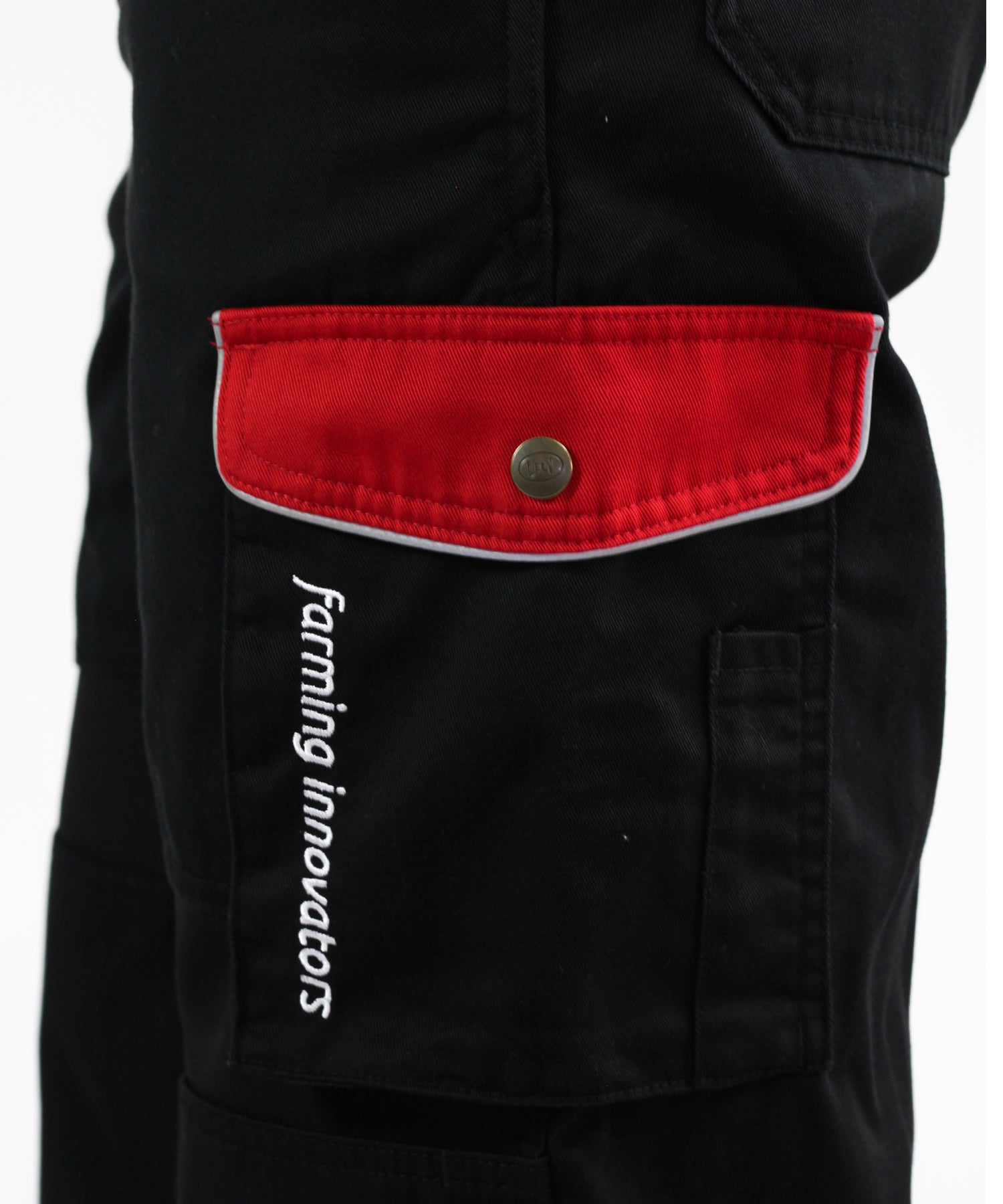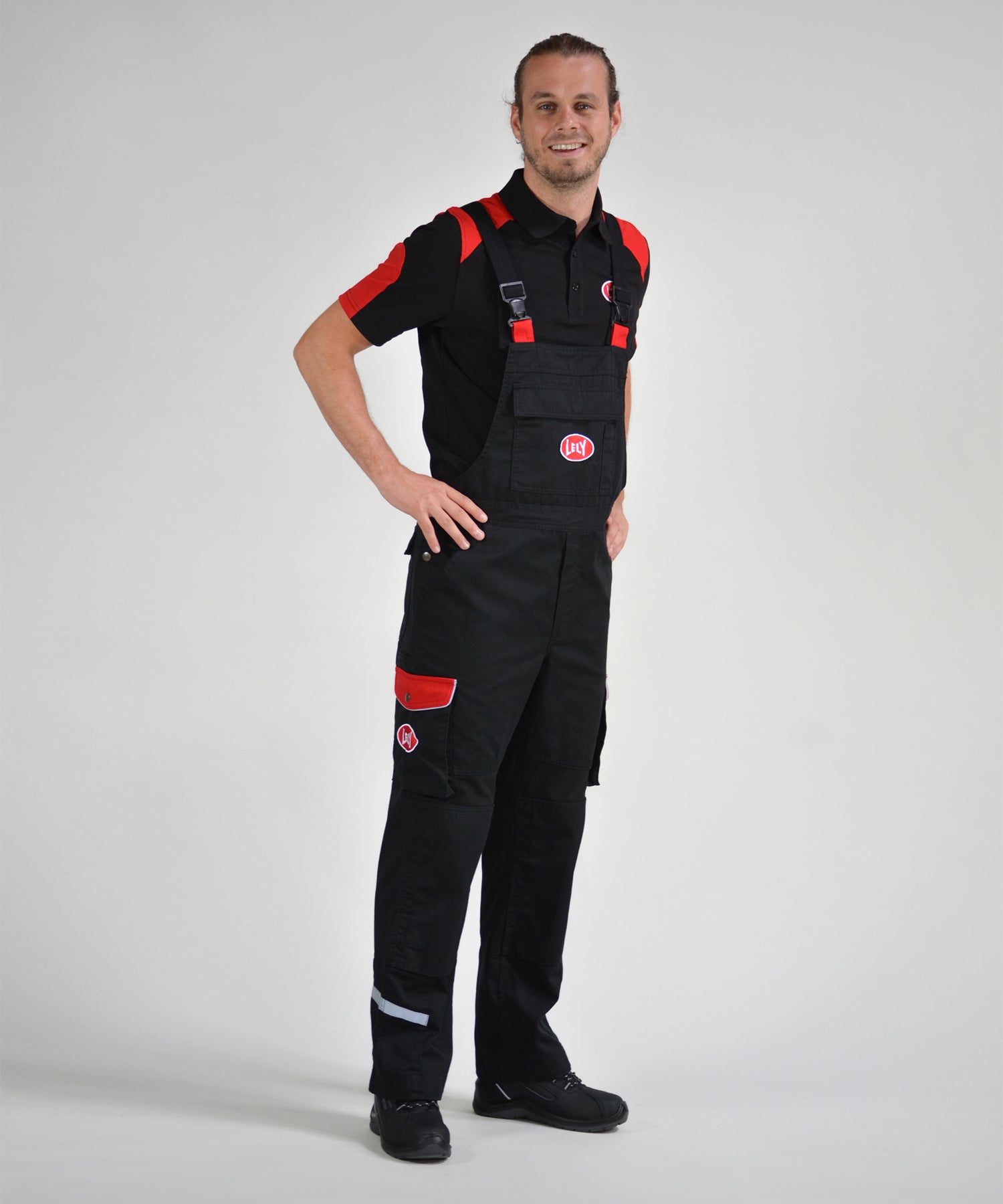 Deze duurzame zwart met rode amerikaanse overall is gemaakt van 65% recyclede polyester en 35% katoen. De elastische banden zijn eenvoudig te verstellen. De overall is voorzien van klepzakken op beide benen, een duimstokzak, steekzakken, achterzakken en 1 grote borstzak met rits. Om te zorgen voor extra bewegingsvrijheid is er rond de knieën stretch-stof toegevoegd. Er zit een Lely logo op de borst en zijzak. Reflectie biezen op meerdere plekken zorgt ervoor dat je goed zichtbaar bent.