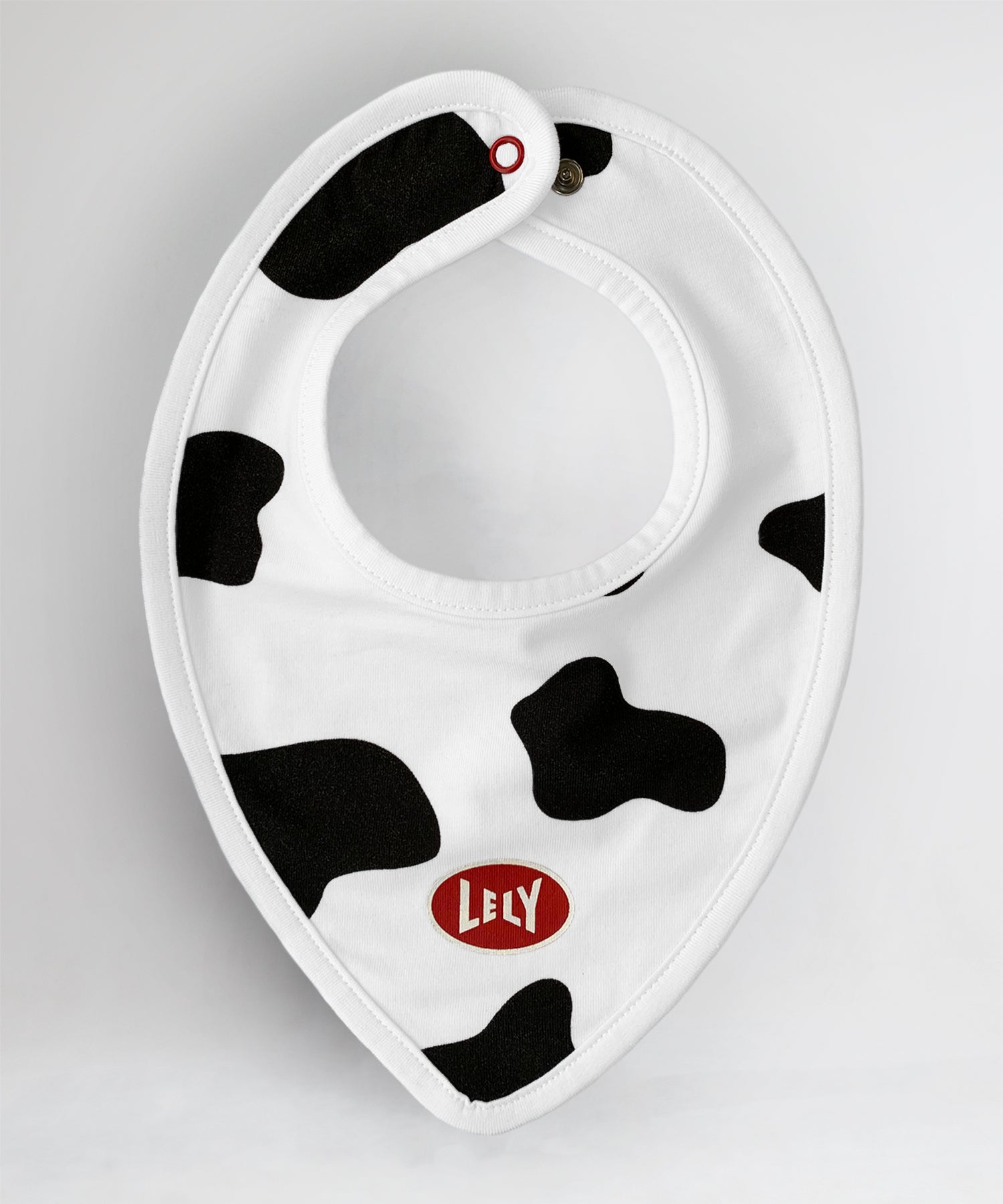 Zwart met wit gevlekt Lely slabbertje met drukknoop.