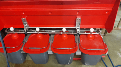Met de type-2 afdekkingen hebben alle vier de emmers nu een aparte afdekking. Hierdoor is het bovenste gedeelte van de M4Use gemakkelijker schoon te maken. Daarnaast kan de emmer met afdekking handmatig naar de kalveren worden vervoerd, wat het risico op besmetting van melk met vuil en vliegen vermindert, mits de afdekkingen goed worden gereinigd.