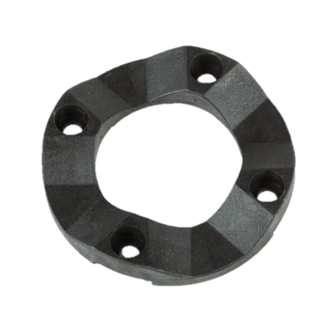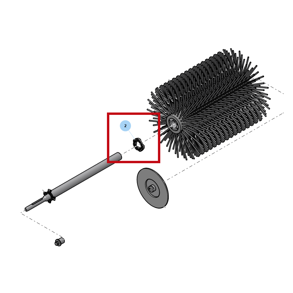 De nokkenschijf zorgt voor een veiligheids- of slipmechanisme: bij te hoge weerstand ontkoppelt ze de aandrijving gedeeltelijk, zodat de borstel beschermd blijft tegen overbelasting.